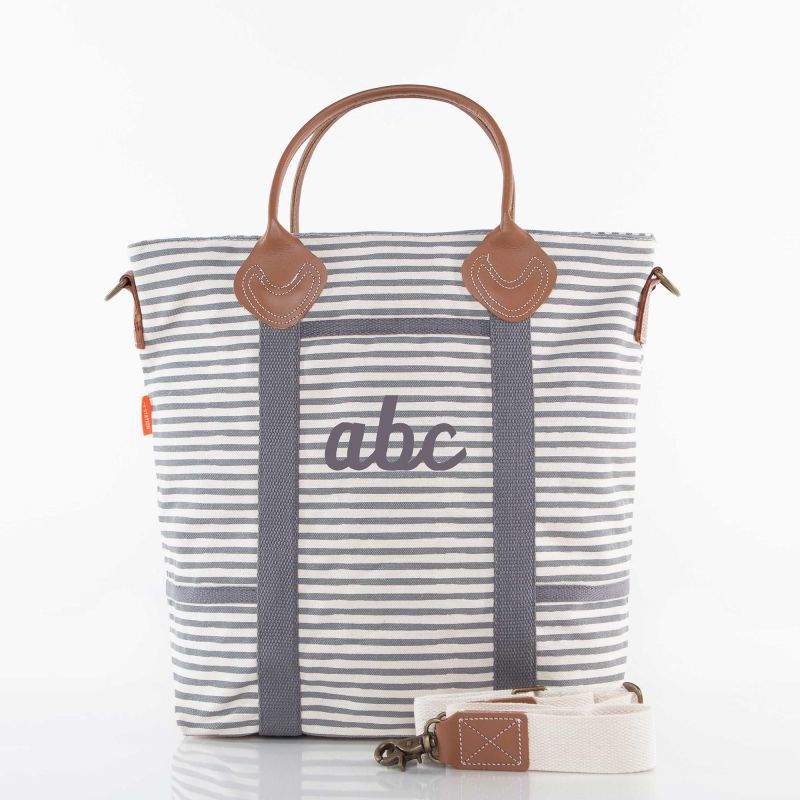 Perfect for your daily commute to work, trip to campus or packing light for a overnight stay, the Flight Bag is a classic yet high end tote with some serious style. Featuring a colored trim or colored trim with stripes, this bag comes equipped with a top zip closure, inside zip pocket and two standard wallet sized pockets. In addition to It's functional inner details, it's outside includes two genuine leather handles and a detachable shoulder strap. Add a three initial or single letter monogram to the Flight Bag for a instant added appeal.